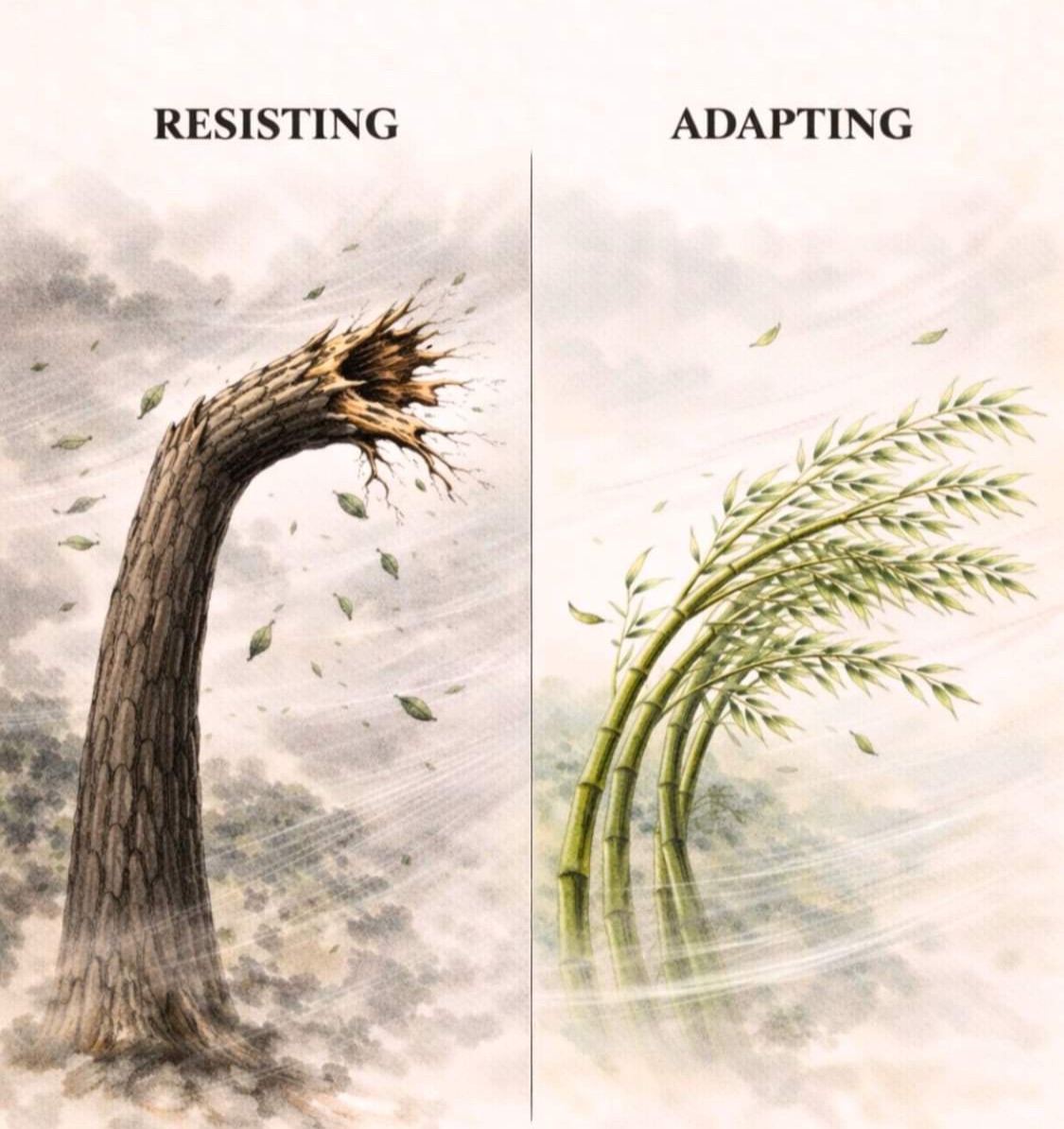 On the other side of that struggle is the bamboo. It doesn’t fight the wind; it dances with it. It understands a truth we often choose to forget: Adaptability is not a sign of weakness; it is the highest form of intelligence.